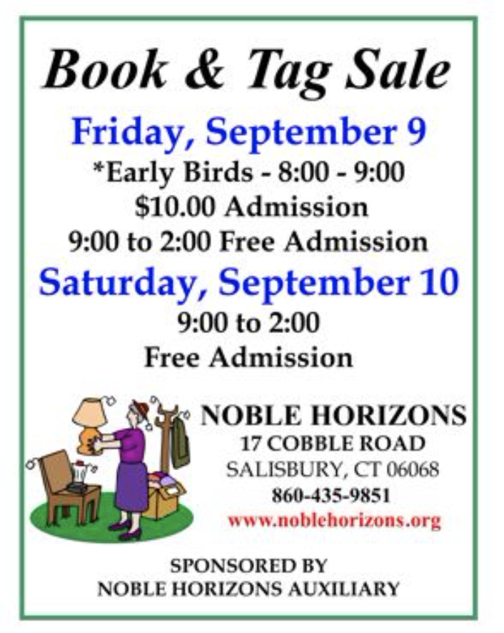 Be sure to mark your calendars for September 9 and 10 when the famous tag sale returns, bigger and better than ever! Early Bird entry is offered on Friday for $10 from 8-9 am; free entry is 9 am-2 pm on Friday and Saturday.